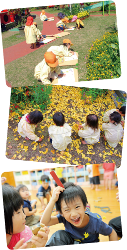 乳幼児期は子どもの人間性の基礎をつくる、とても大切な時期です。友だちと過ごす日々の中で、自分の意見を持ち自信を持つことで、こころからすなおな子になれるようにと考えています。