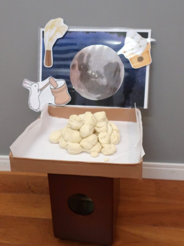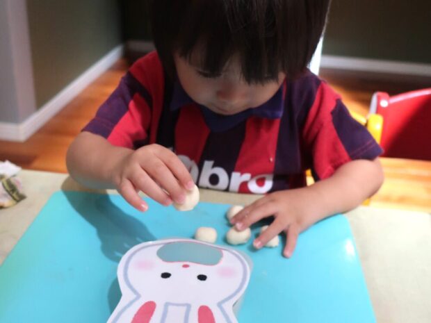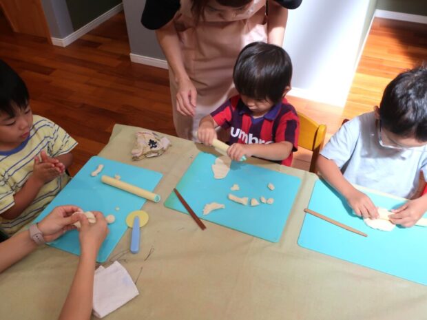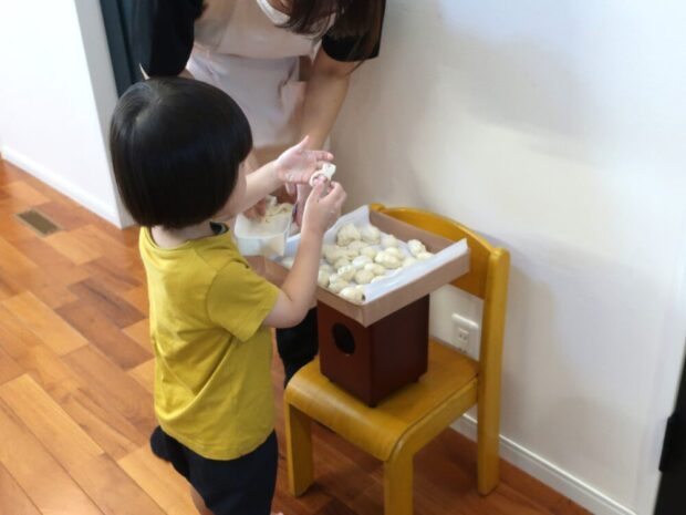 かるがもでは十五夜にちなんで、小麦粉粘土を使ったお月見だんご作りを行いました🍡