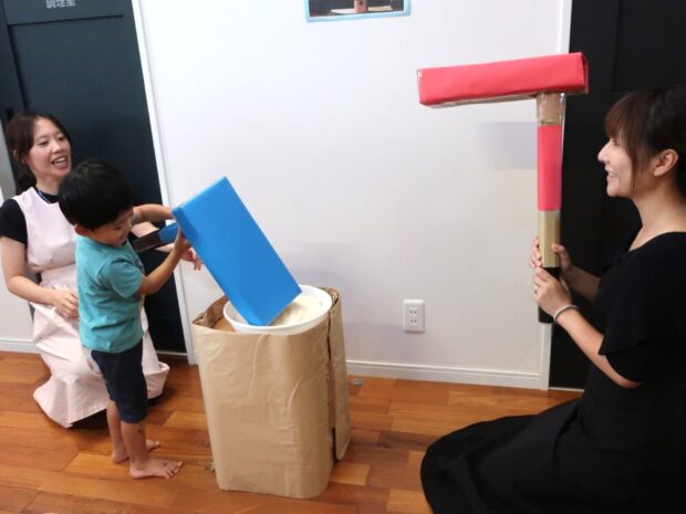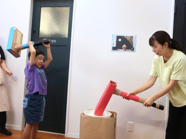 みんなで数を数えながら、杵と臼を使ってお餅をつきました🙌