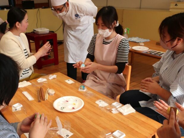 前半は、姶良市に店を構える40年続く老舗御菓子司「あじ福」の3代目店主をお招きし、練り切りづくり体験を行いました🍡