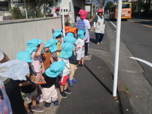 お約束を守り、最後までしっかり歩いて達成感を感じる時間でした。「たのしかったー!」「バスがいたよー!」とニコニコ笑顔で振り返る姿が見られました☆今後も、お天気と相談をしながらお散歩に出かけて、子どもたちと沢山の発見をしたいと思います。