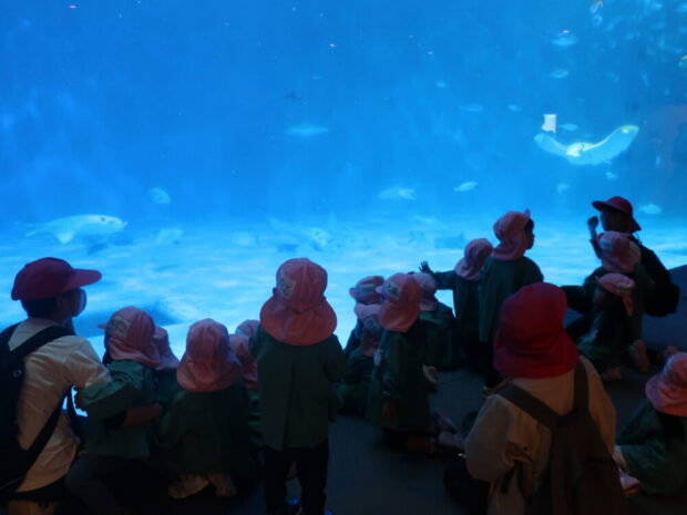 レポート 2025年12月04日 遠足に行きました!(かもめ・つばめ・はと組) ツイート 先日、かもめ・つばめ・はと組さんで遠足に出かけましたよ(^^)あいにくの雨模様でしたが、子どもたちはとてもわくわく♡今回は、水族館と鹿児島中央駅に出かけました! 水族館では、色々なお魚を見たり、イルカのショーを見たりと、子どもたちは目をキラキラ輝かせながら楽しんでいましたよ♬ お弁当をみんなで食べた後は、鹿児島中央駅へ。新幹線を見に行きましたよ(^^) 近くで新幹線を見る事が出来て、こどもたちもとても嬉しそうでしたよ♡また、子どもたちと一緒に楽しい思い出を作っていきたいと思います♬